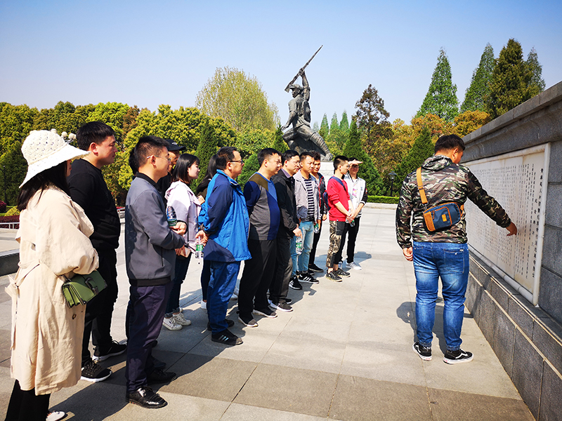 7日上午,項目部一行二十余人懷著無比崇敬的心情來到教育活動的第一站——黃麻起義和鄂豫皖蘇區革命烈士陵園。邁過大門,穿過一片林蔭大道,來到巍然聳立的烈士紀念碑前,大家瞻仰先烈,認真閱讀碑文,感受革命先驅為家、為國的大無畏犧牲精神。“小小黃安,人人好漢。銅鑼一響,四十八萬。男將打仗,女將送飯”,紀念碑背面這首簡單的童謠更是敲擊著我們的內心:是無數的烈士用他們的生命和鮮血換來我們今天的幸福生活,我們還有什么理由不珍惜?!