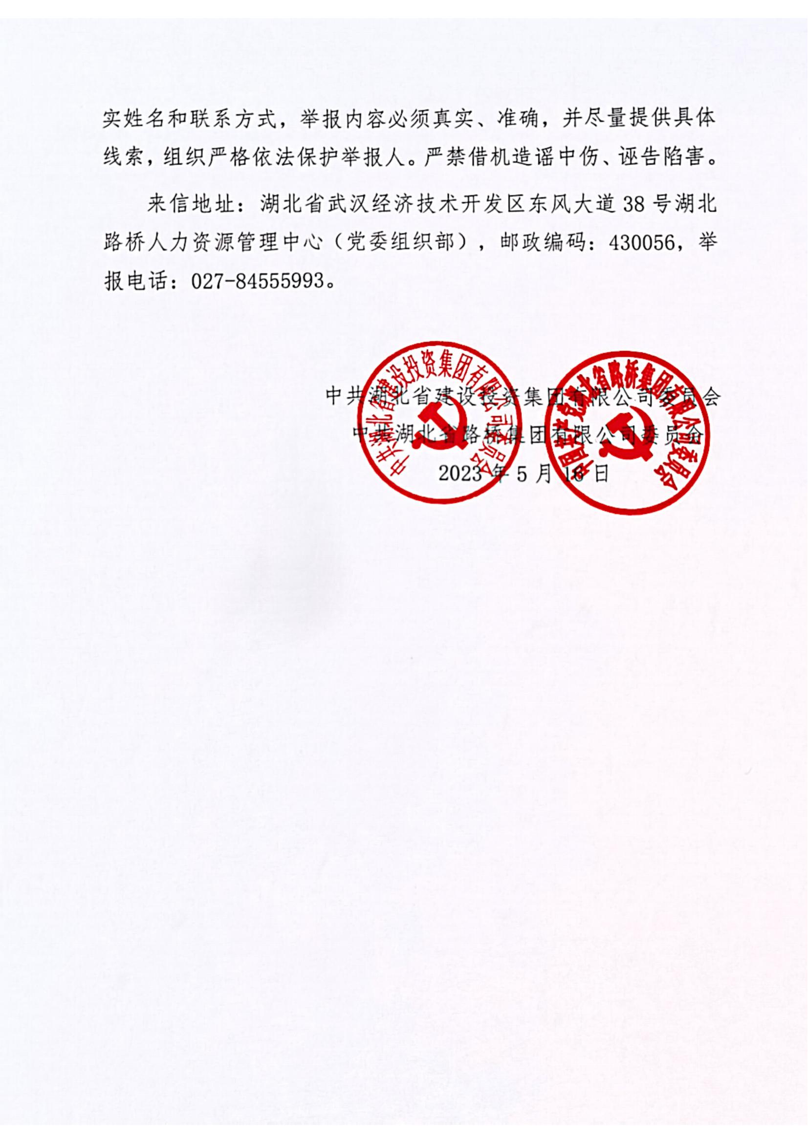 湖北省路橋集團有限公司擬提拔任用管理人員任前公示