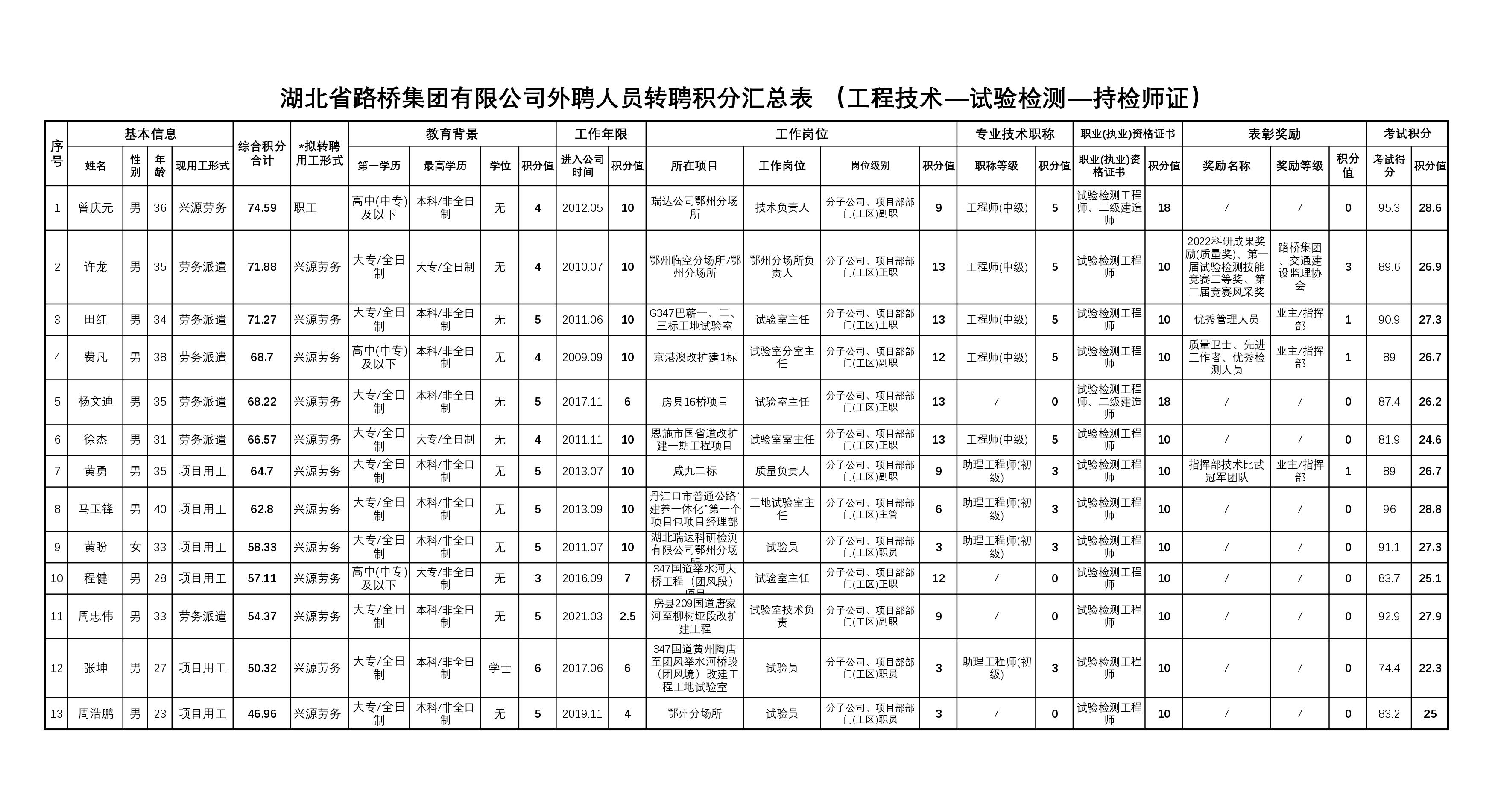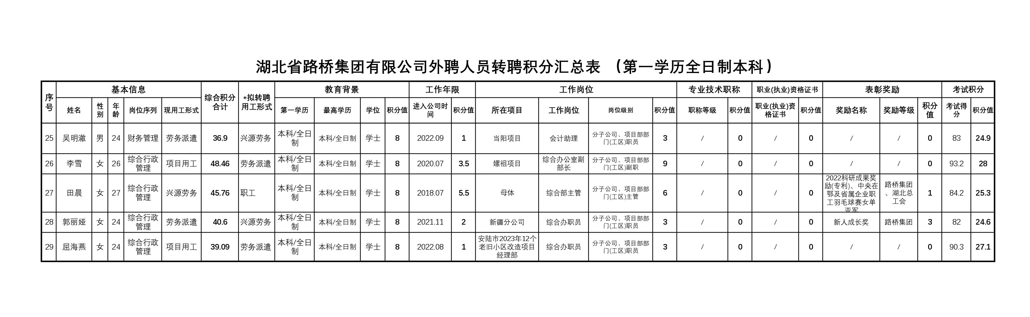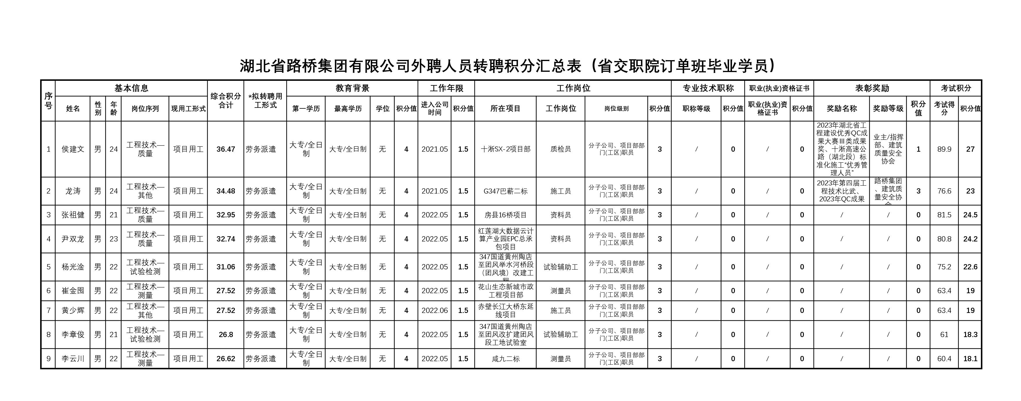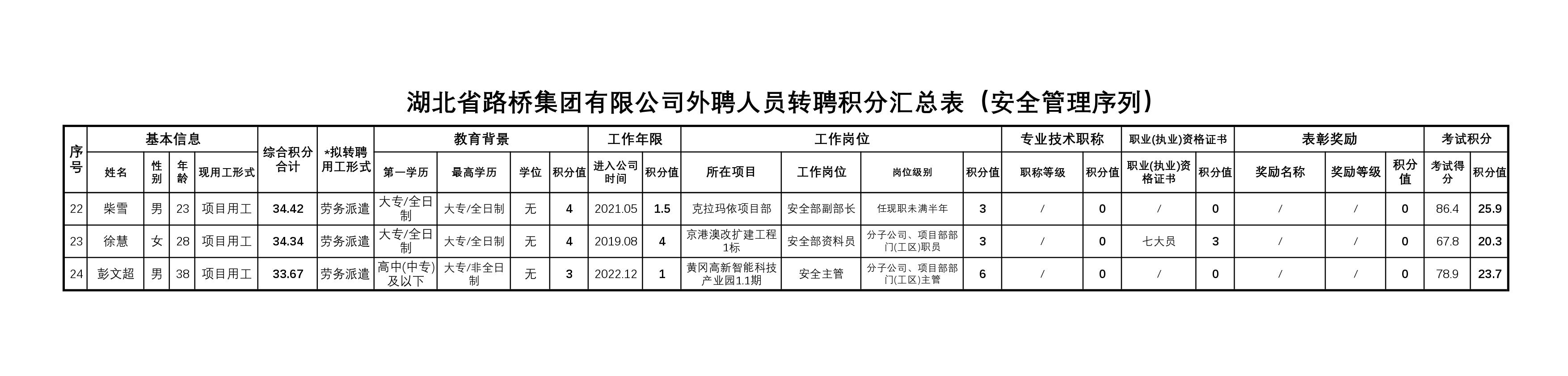 湖北省路橋集團有限公司2023年度擬轉(zhuǎn)聘人員補充公示