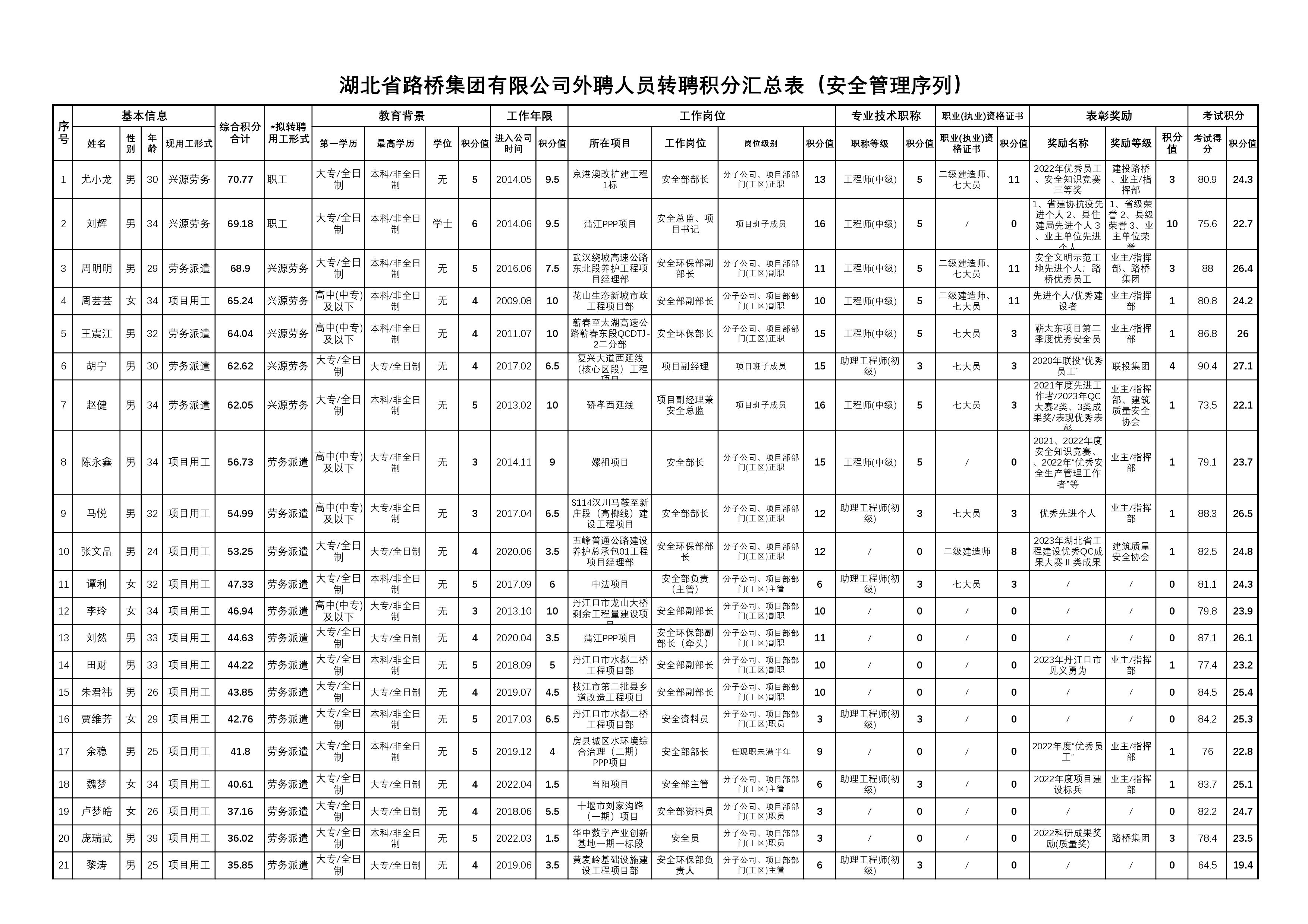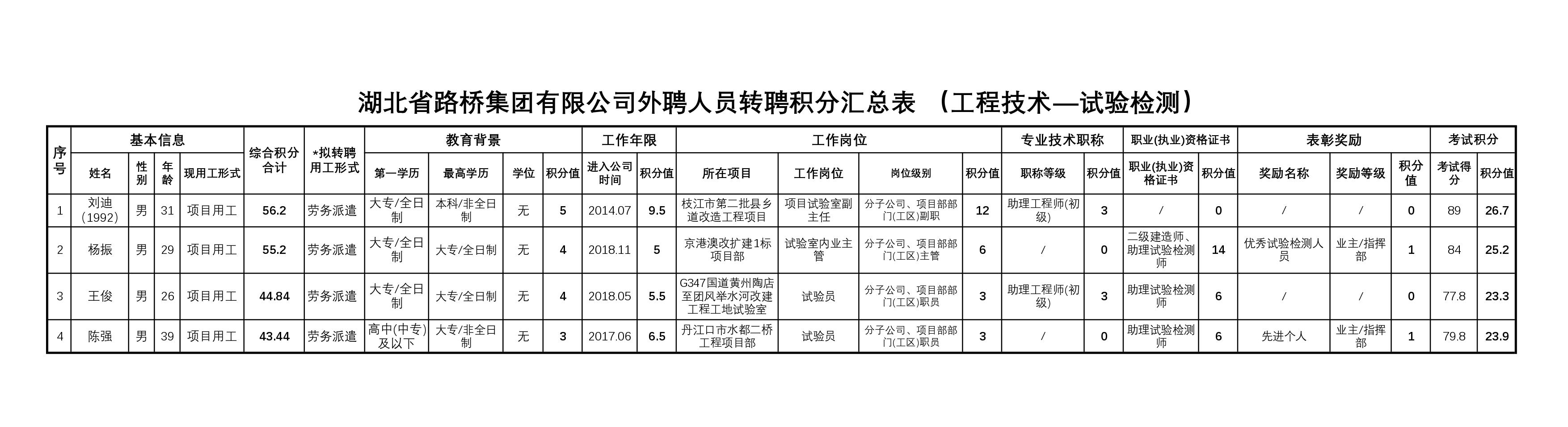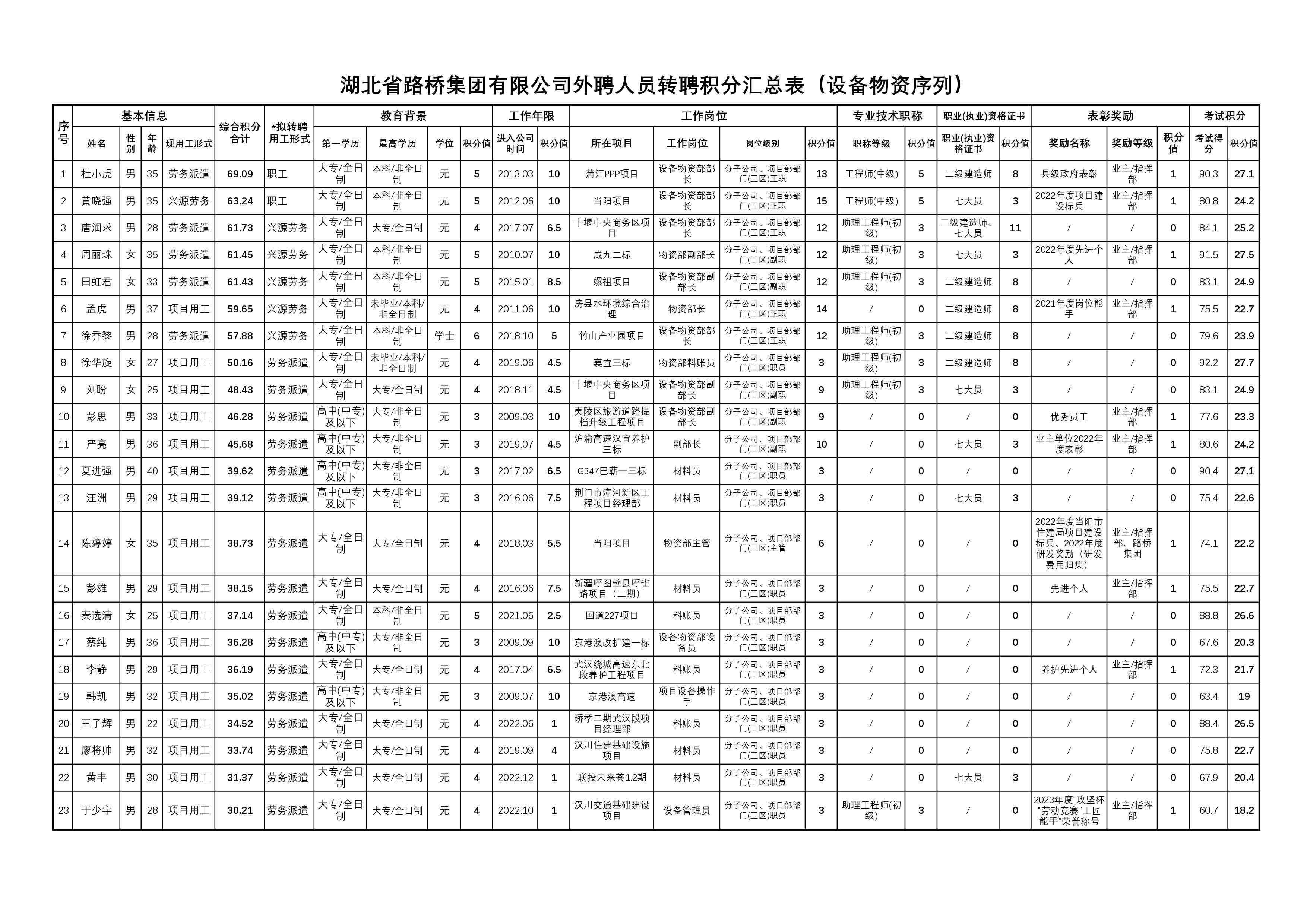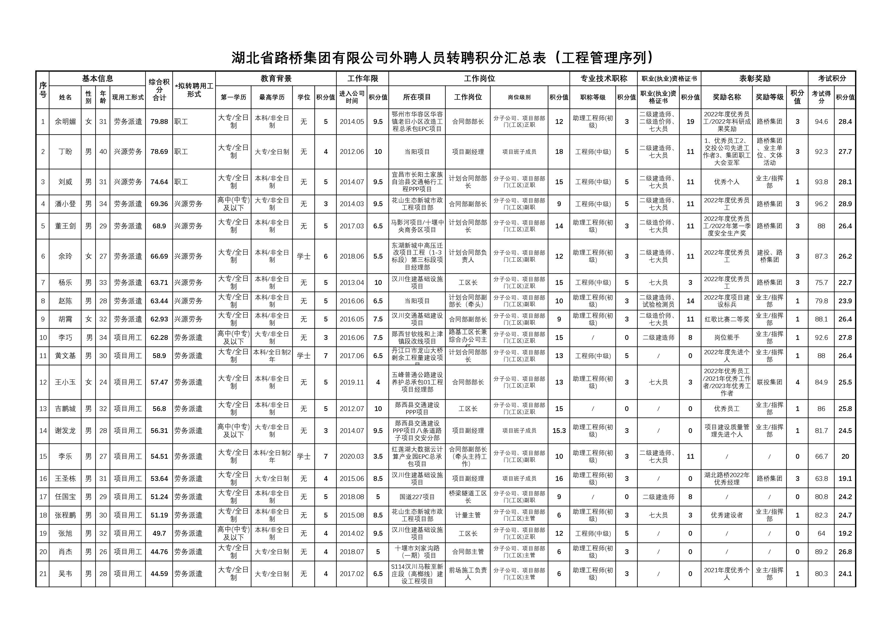 湖北省路橋集團有限公司2023年度擬轉(zhuǎn)聘人員補充公示
