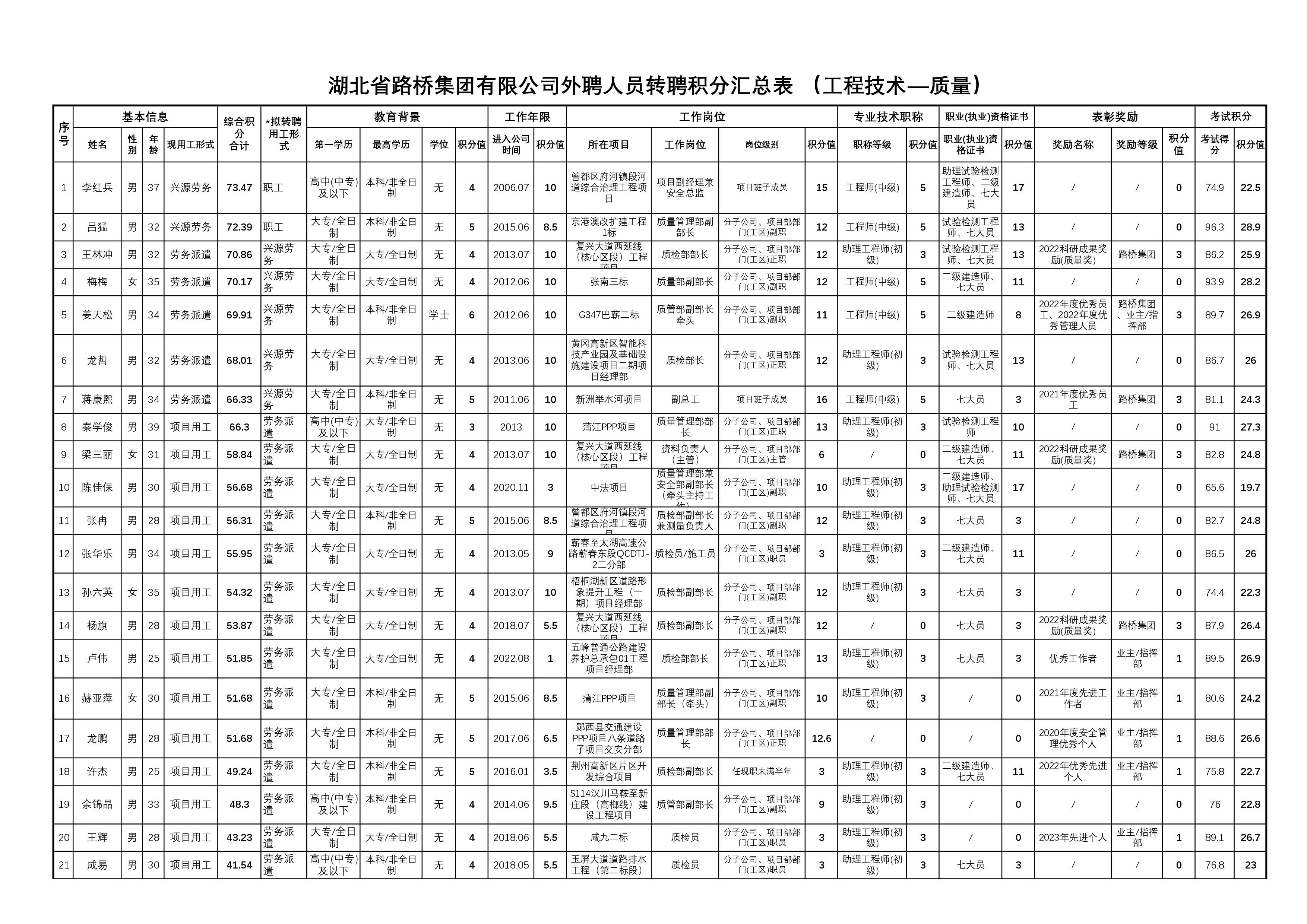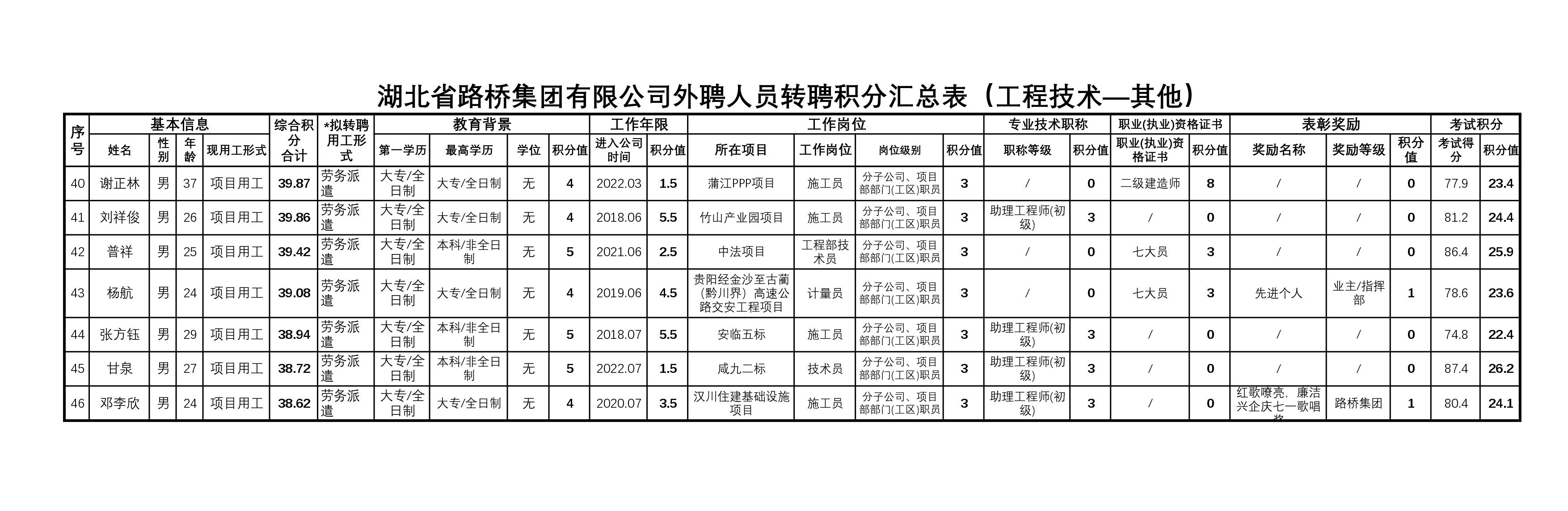 湖北省路橋集團有限公司2023年擬轉(zhuǎn)聘人員公示