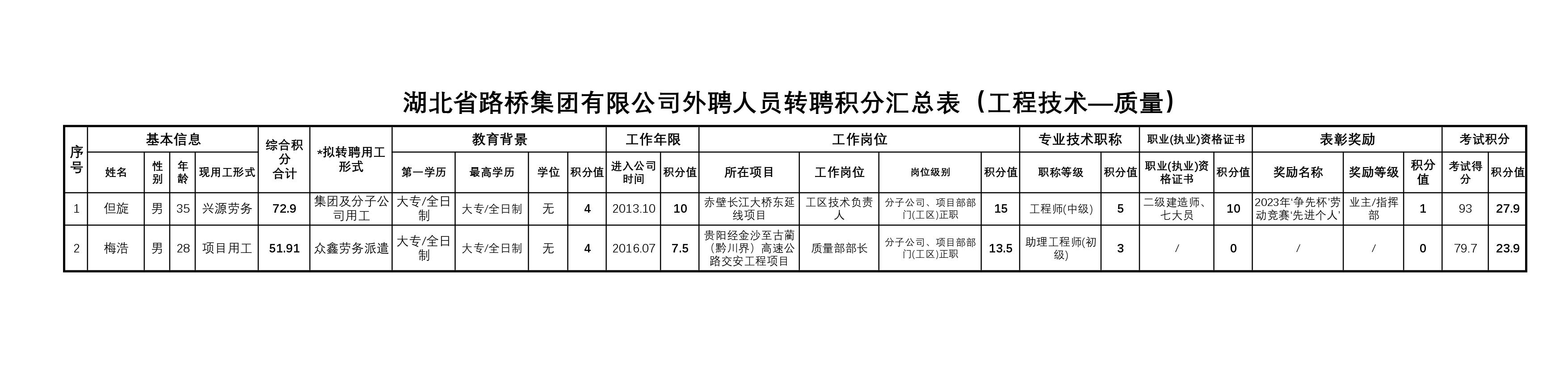 湖北省路橋集團有限公司2023年度擬轉(zhuǎn)聘人員補充公示