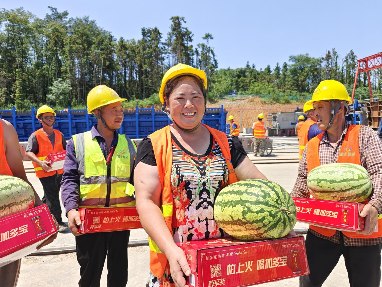 汪繼明深入赤壁東項目2號梁場,實地察看項目施工進展、安全質量管控等情況,隨后在項目現(xiàn)場進行慰問,將防暑降溫物品送到一線員工手中,將集團的關心關愛送到職工群眾心坎上,為酷暑“降”溫,讓愛心“升”溫。同時他貼心叮囑大家要勞逸結合,注意防暑降溫,確保安全生產(chǎn)。湖北交投鄂南公司黨委書記、董事長倪四清,黨委委員、副總經(jīng)理湯立志等參與慰問活動。