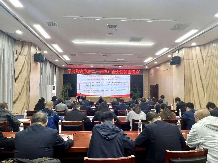 為深入學習貫徹黨的二十屆三中全會精神,11月20日,湖北路橋黨委委員、副總經理、總工程師朱紅明對分管板塊公司開展黨的二十屆三中全會精神專題宣講。