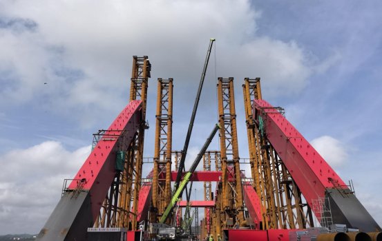 目前,水都二橋工程全橋下部結構、引橋上部混凝土主體結構和主橋主梁鋼結構全部完成,正在進行鋼拱肋拼裝、引橋附屬設施工作,項目計劃五月中旬前完成第三跨鋼拱肋提升工作,七月份左右完成全橋鋼拱肋安裝提升、主橋UHPC施工、附屬設施等工作。水都二橋建成后,將與水都大橋配合協(xié)調使用,對改善丹江口市交通環(huán)境,具有非常重要的意義。湖北路橋將加大資源投入,合理組織、精心安排,爭取水都二橋工程早日建成通車。